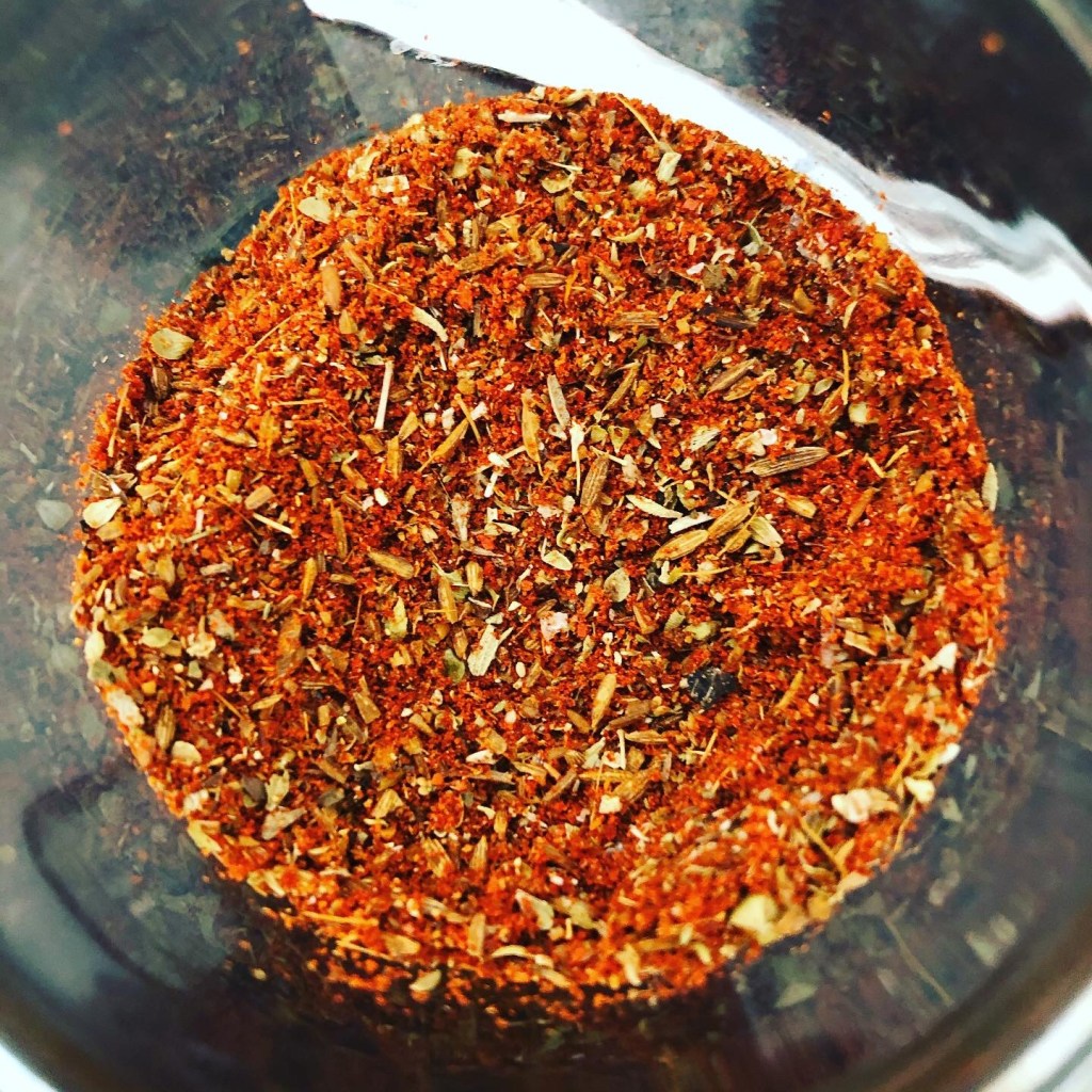 Spray the whole of the mixture with a few sprays of low calorie cooking spray and shake on about 2 tbsp of the Fajita spice and add the crushed garlic. Toss everything together (I use my hands but you could use a large spatula if you like) to ensure a nice even coating.
