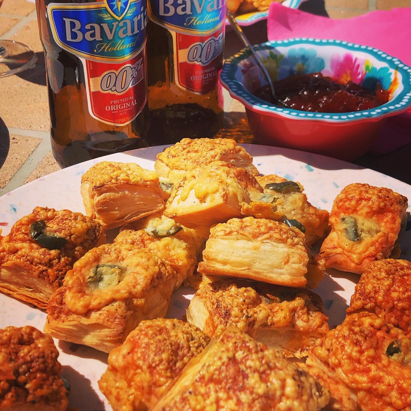 These delicious, moreish cheesy crispy squares have a real kick from the pieces of jalapeño on the top. They make a very quick and easy nibble to serve with drinks or to share with friends whilst the BBQ is cooking.