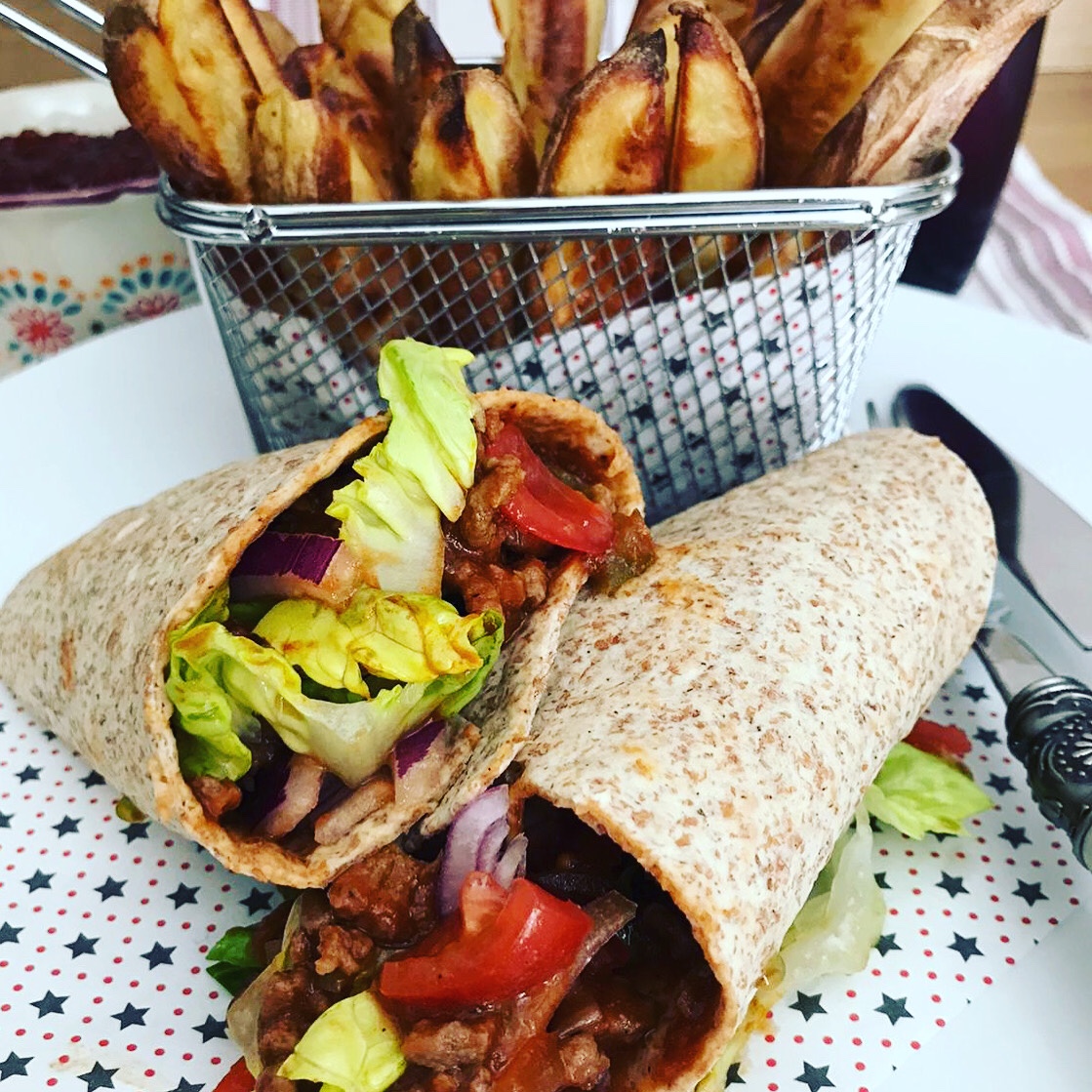 These sloppy Joe wraps are everything you could wish for in this crowd – pleasing style sandwich, which could be served in a bun if you prefer. A rich meaty filling smothered in tangy tomato sauce that just refuses to stay in the wrap, you definitely need a knife, fork and plenty of napkins to eat this mouth watering meal.
