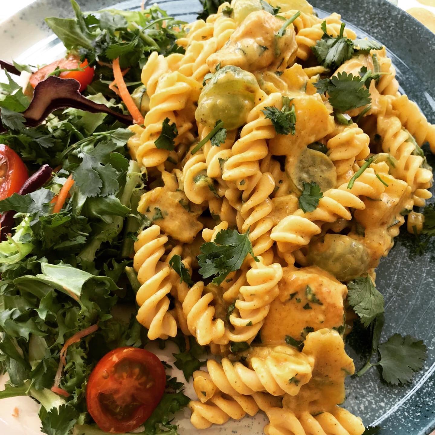 This is an unusual version of a good old coronation chicken recipe which is normally mayonnaise based and higher in fat and calories.