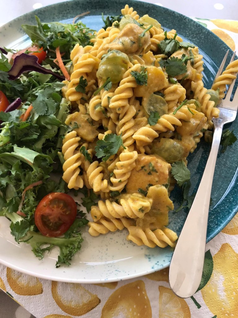 Add a bit more salt and pepper if you like, then chill over night before serving with cold cooked pasta and a delicious green salad garnished with a sprinkle of fresh coriander.