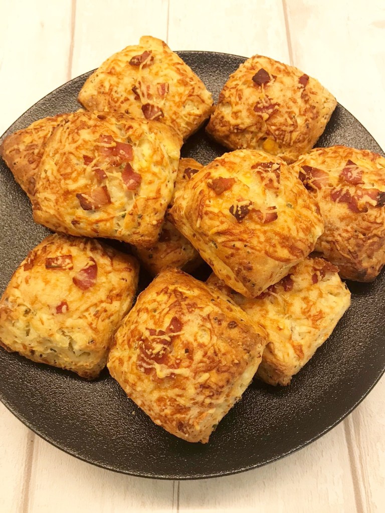 These usual savoury scones are an amazing combination, and could be a great idea for any meal, being egg and bacon, great for breakfast with butter, lunch with a hunk of cheese, pickles and salad or just an on the go snack.