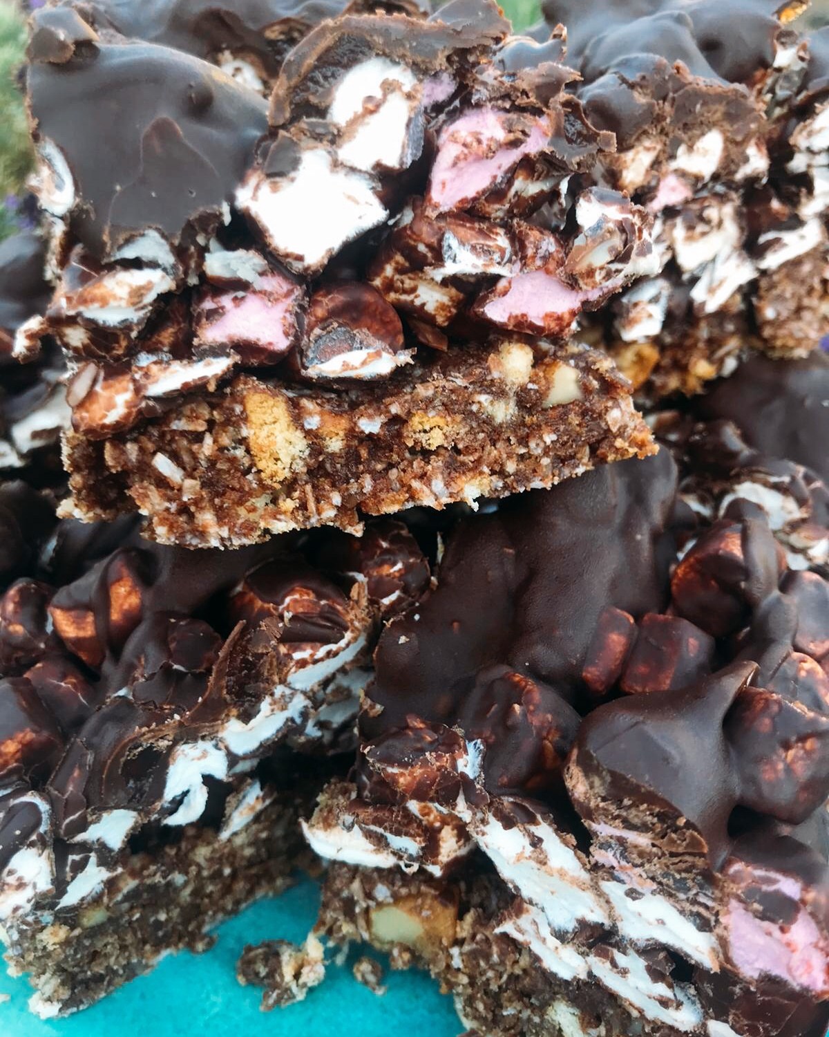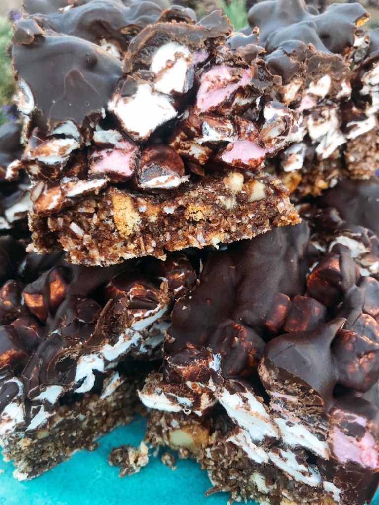 When I have made rocky road in the past all the ingredients are all stirred together but this version is made in 3 layers which I thought made it more scrumptious.