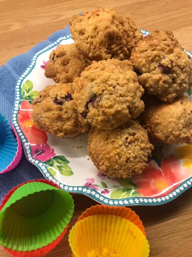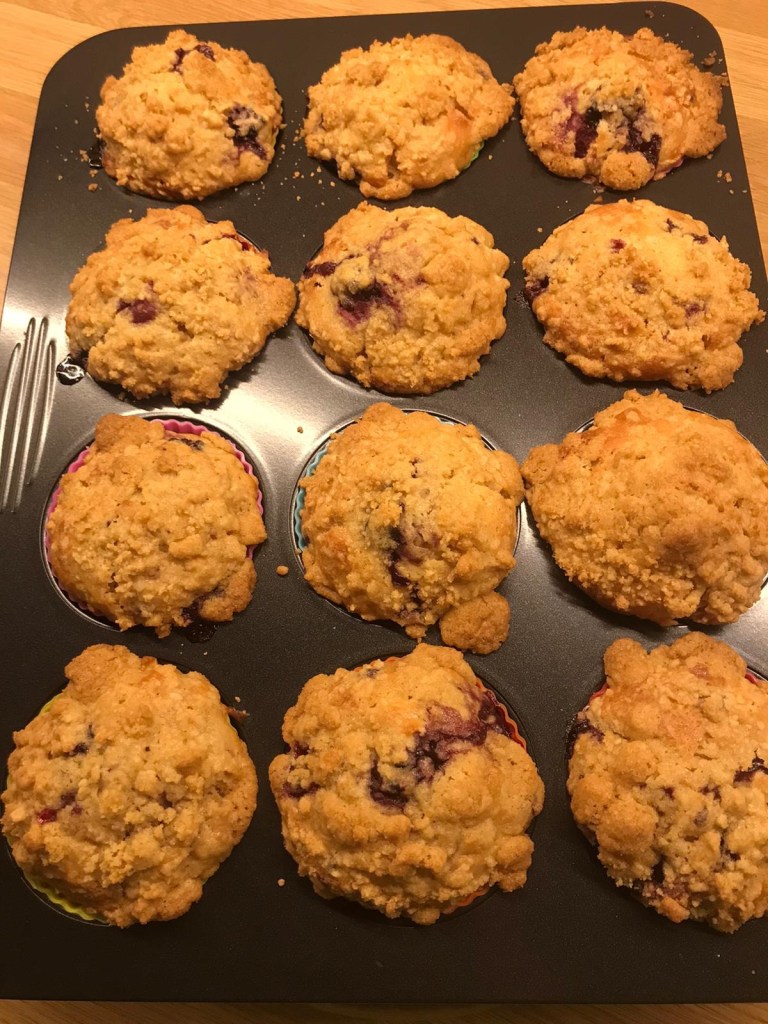 These moist fruity muffins with their crispy crumble style topping have been described as marvellous and a little bite of summer.