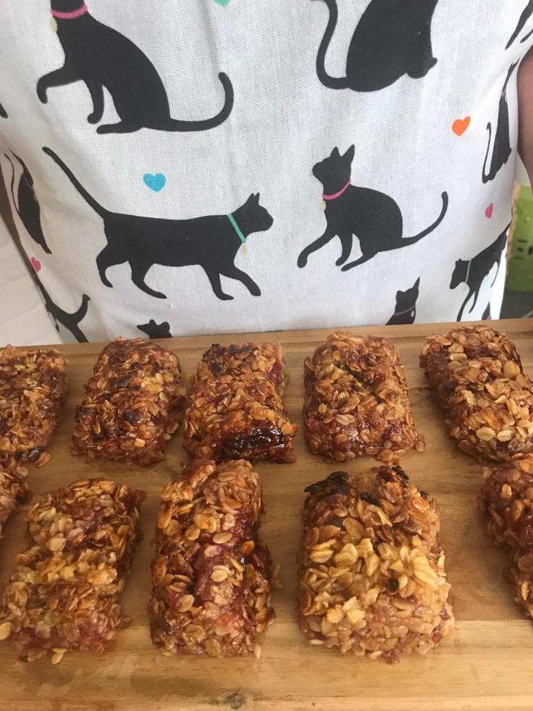 Jammy Flapjacks are the perfect snack for a picnic or a foraging expedition. I used raspberry jam, but you could easily use your favourite jam either shop brought or homemade, but whichever jam you use they are incredibly tasty.