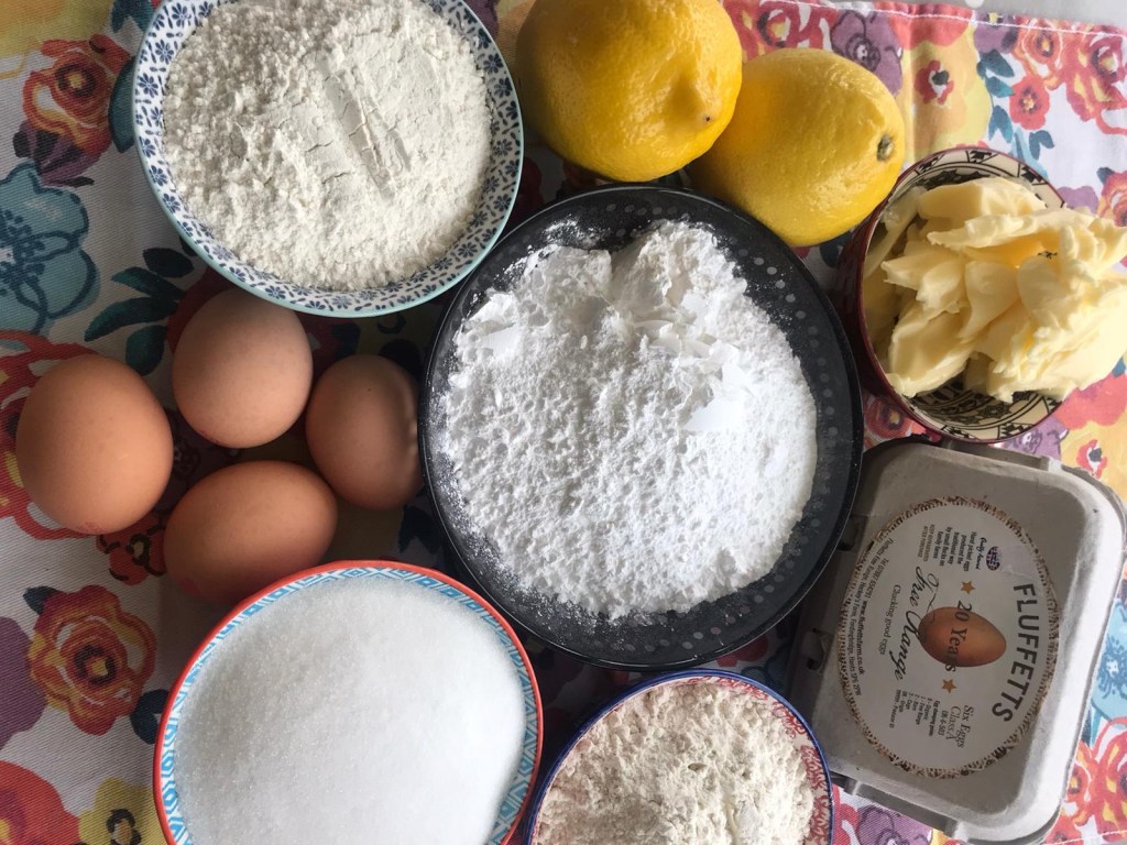 In a big bowl rub together the self – raising flour, 150g plain flour, 75g icing sugar and butter until it forms breadcrumbs, and then comes together to form a light texture dough which should resemble a texture like shortbread. Press this into the base of your lined tin and bake on the bottom shelf for 20minutes until golden brown.