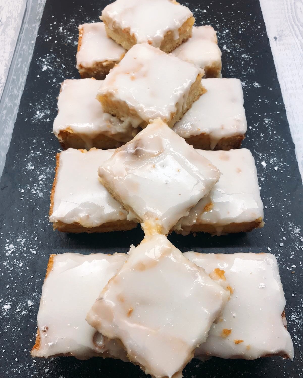 When I made these sweet tangy lemon squares for the first time I could not believe how easy they were to make, they are in 3 layers, a crisp buttery shortbread base, a sweet but sharp lemon custard which bakes in the oven then topped with a this white citrus icing then left to cool before cutting into squares.