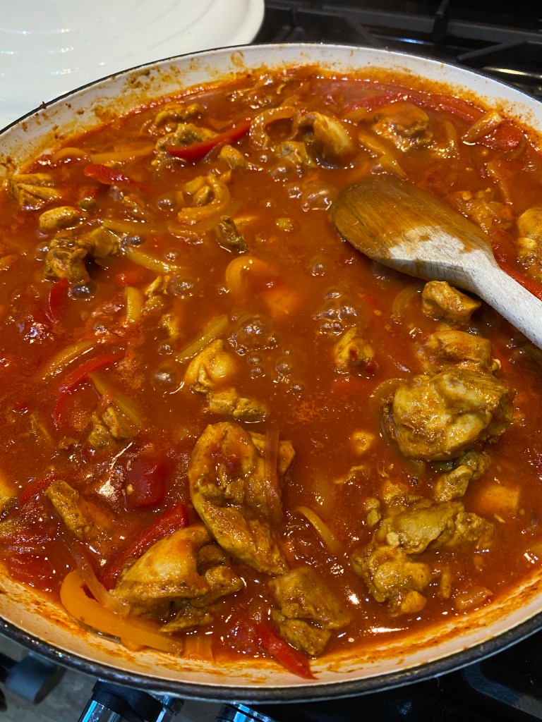 Return the browned chicken pieces to the pan and carefully stir through. Simmer, partly covered, for 20 minutes, stirring occasionally, until the chicken is cooked through and the sauce has thickened.