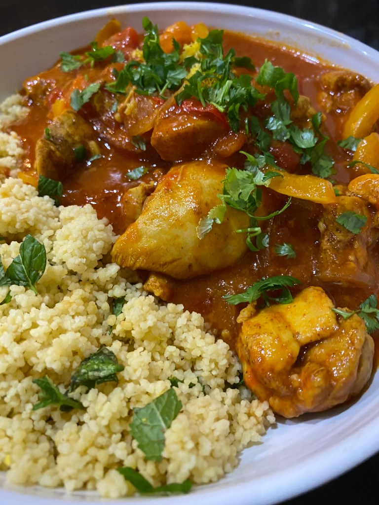 Happy October! Lovely and warming, this chicken Tagine has exotic tasting spices, sweet peppers and apricots to cheer up any Autumn evening.