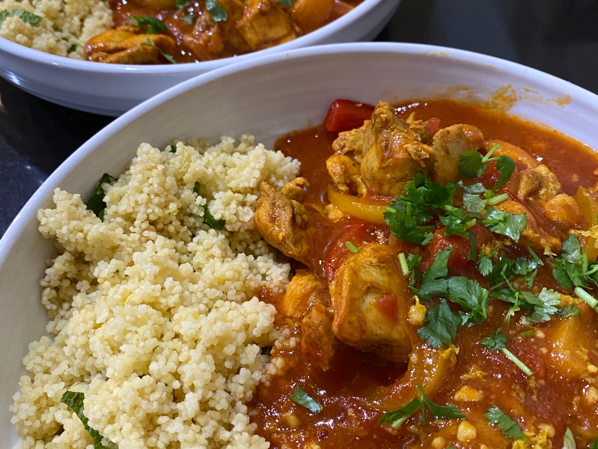 Happy October! Lovely and warming, this chicken Tagine has exotic tasting spices, sweet peppers and apricots to cheer up any Autumn evening.