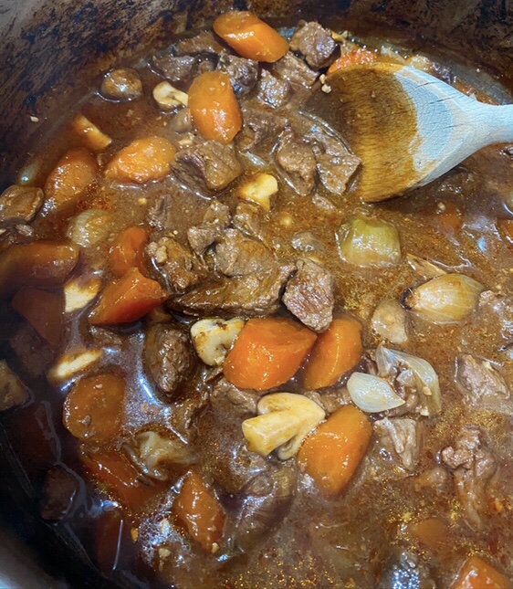 Return the beef to the pan and add the mushrooms and put the lid on to keep warm.