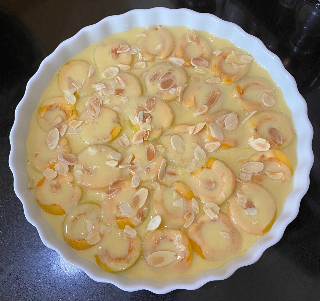 Pour the batter over the apricots and sprinkle over the almonds if using. Bake for about 50-55 minutes until the clafoutis has risen and is golden, and a skewer inserted in the centre comes out clean.