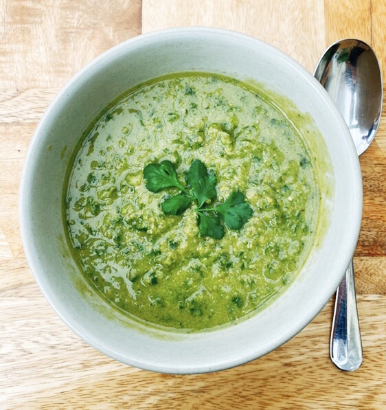 Combine all ingredients (apart from the coriander) in a food processor and blend until smooth.