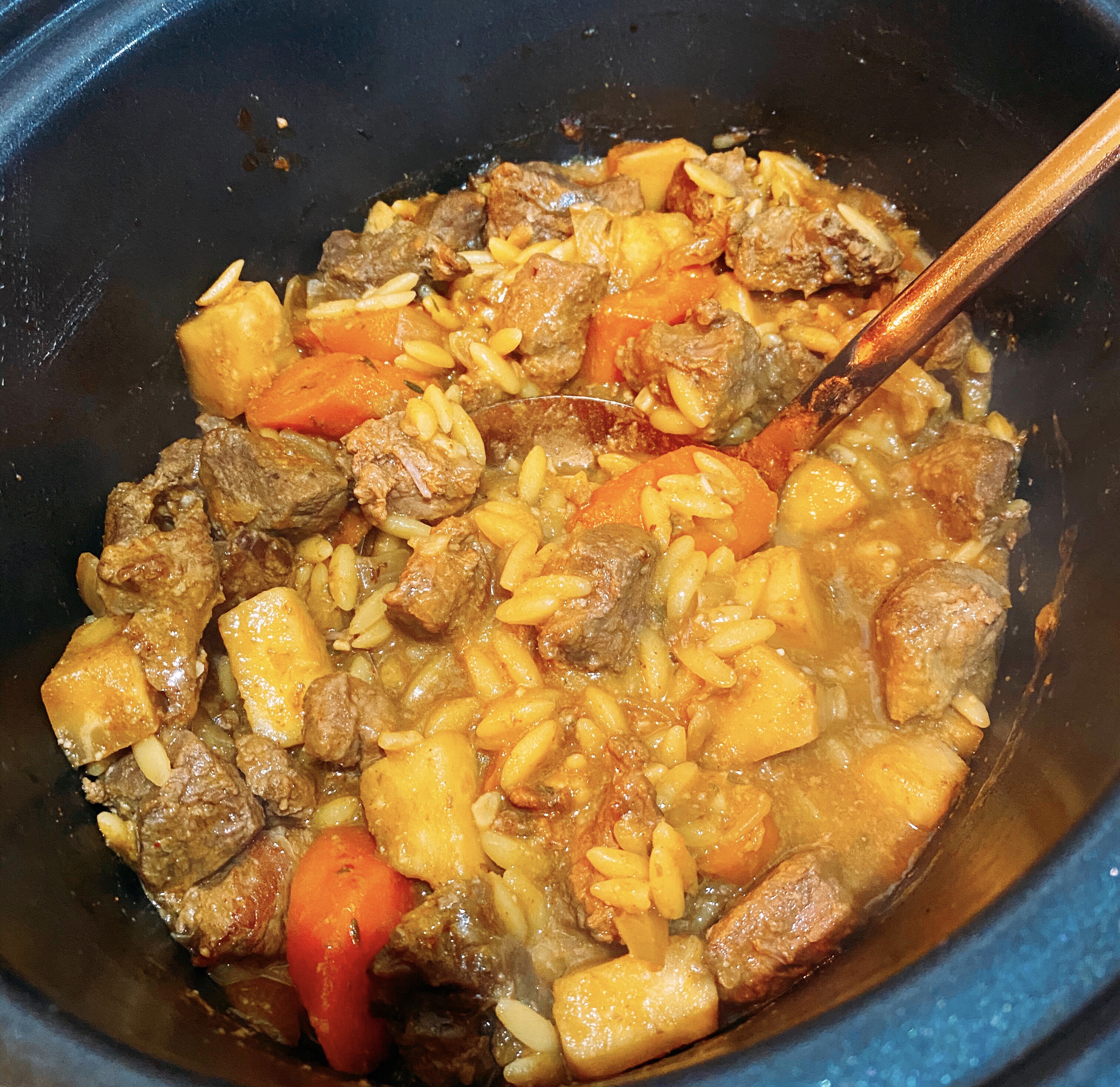 Pour in the stock and Tamarind paste (if using), add the bay leaf and thyme. Stir and cover with the lid, turn to low and cook for 4 hours or until the beef and vegetables are tender.