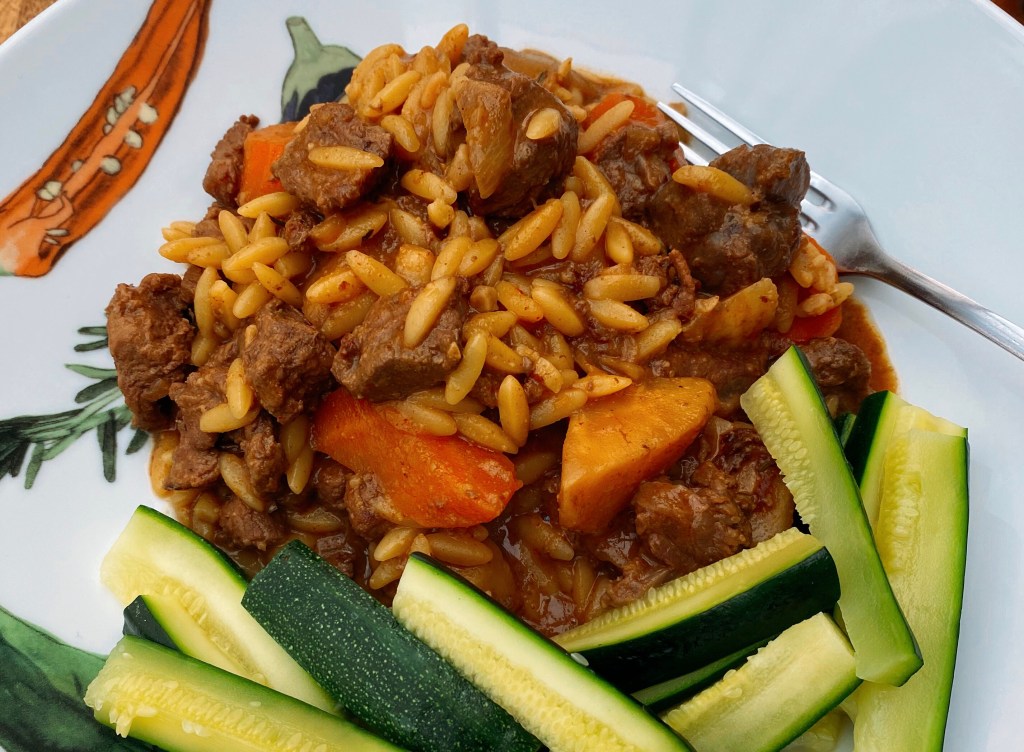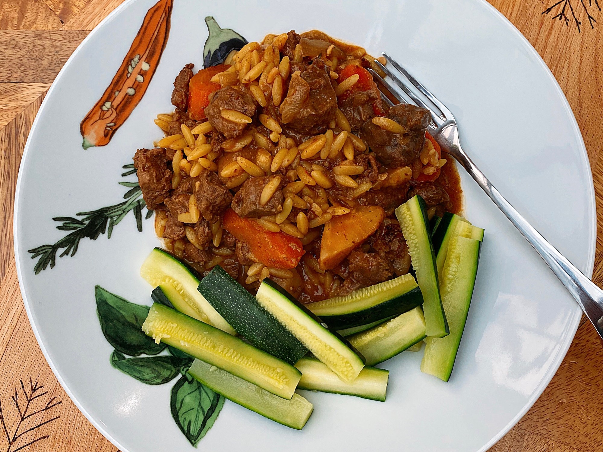 Put the lid back on and cook for another 45 minutes or until the orzo is cooked through and the sauce has thickened slightly.