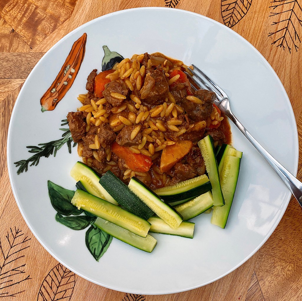 Turn the slow cooker back up to high, remove about 4 tbsp of the sauce and mix it with the peanut butter, stir this back into the slow cooker along with the orzo.