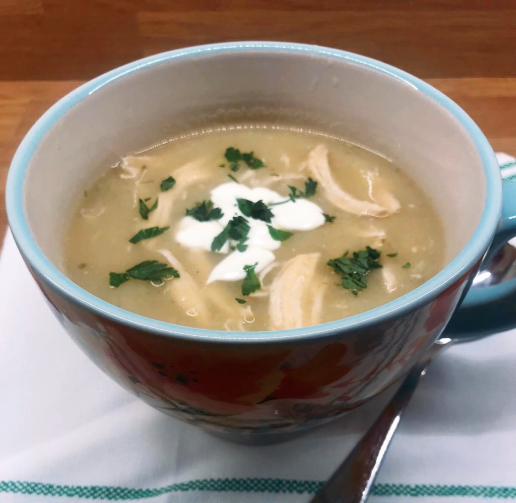 Place the shredded chicken back into the soup and warm through if eating straight away.