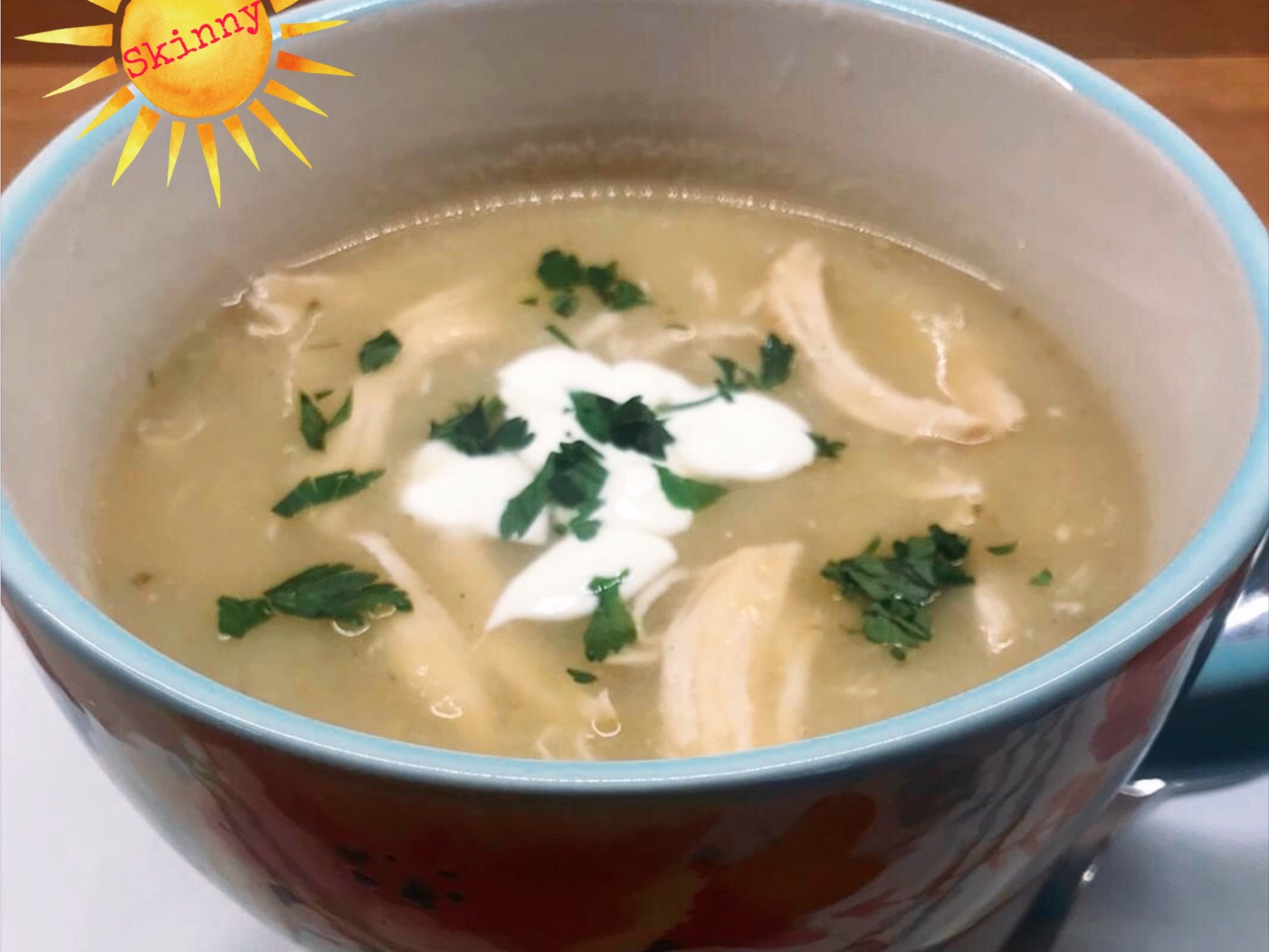 Remove the chicken to a plate and using 2 forks shred the chicken. Before placing the chicken back into the soup, blend the soup until smooth, either in a blender or using a stick blender.