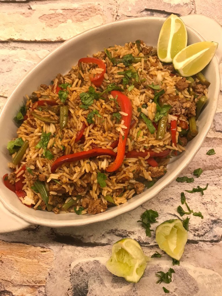 Lean mince, delicious rice, colourful green beans and red peppers all come together with flavourful herbs and spices.