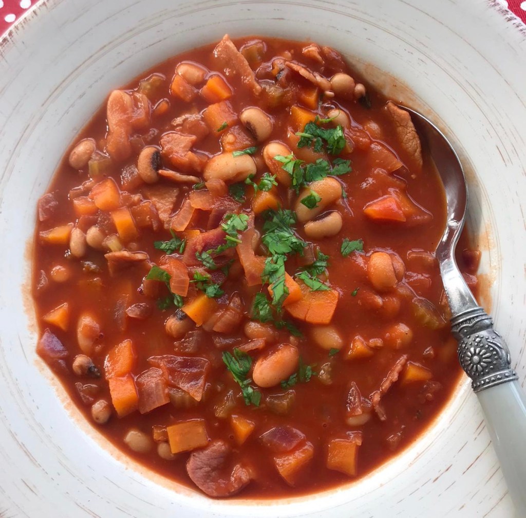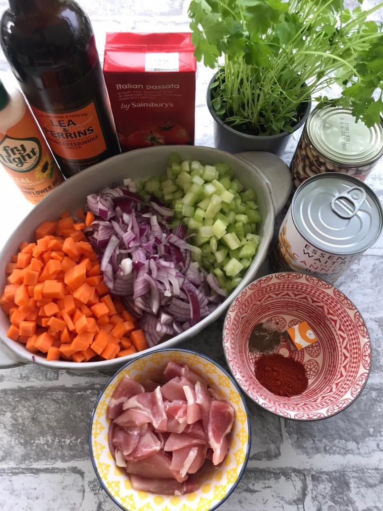 A delicious warming chunky winter soup full of filling vegetables lean strips of bacon and soft tinned beans of your choice, I used black eyed and cannellini but haricot or even chickpeas would work just as well.