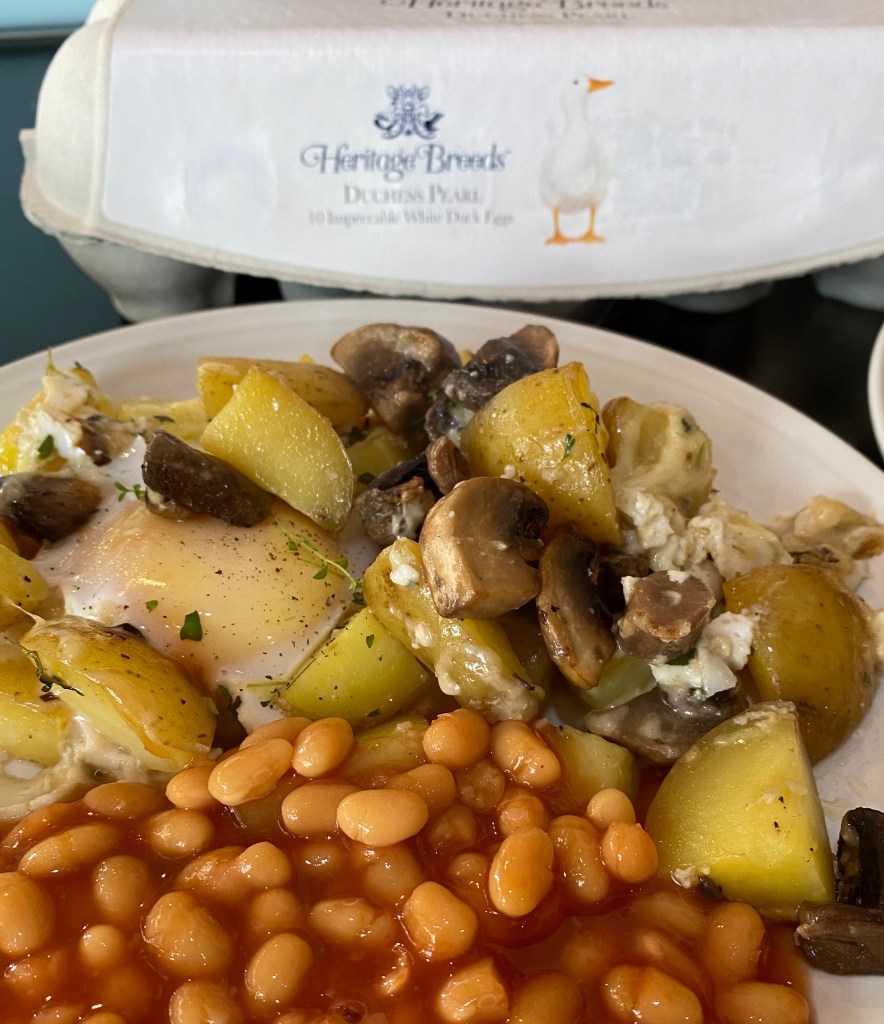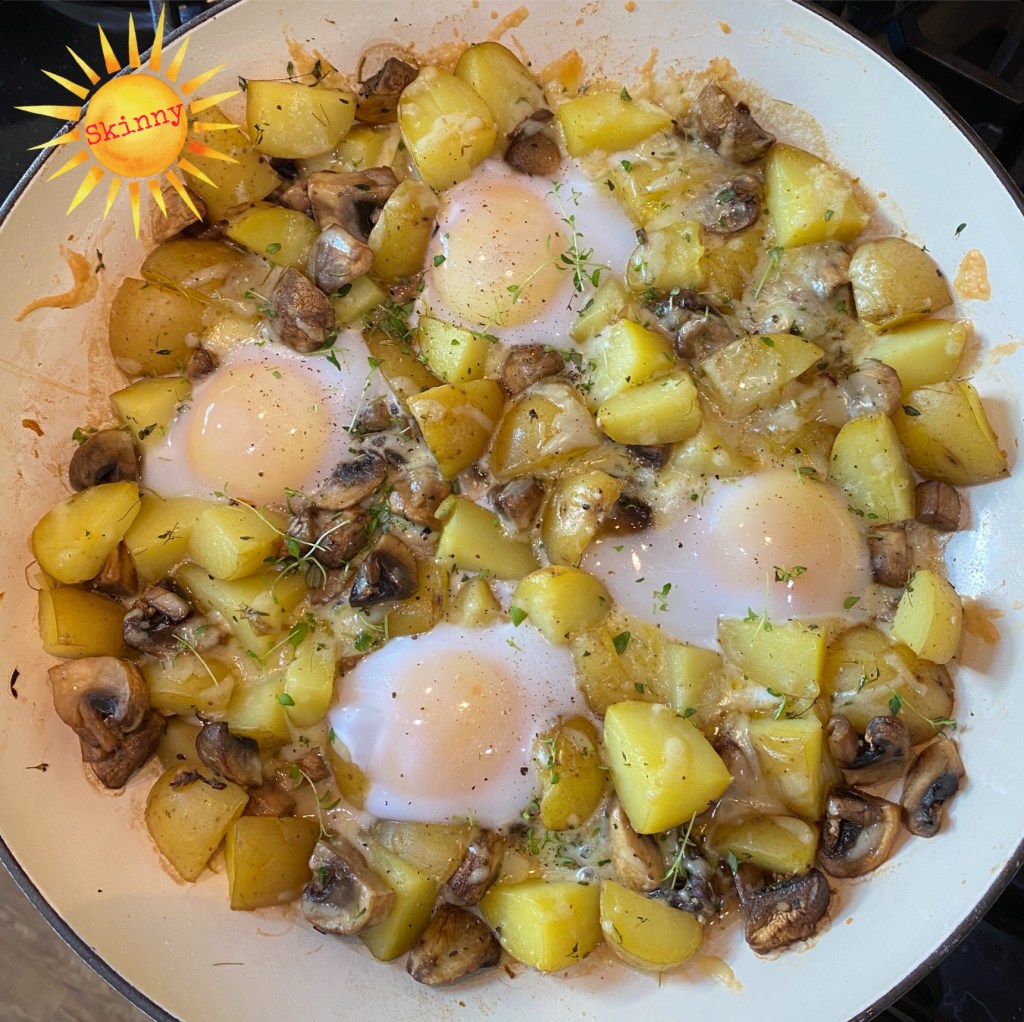 Bake in the oven for 12-15 mins until the eggs are set and the cheese has melted. Serve with baked beans 😋