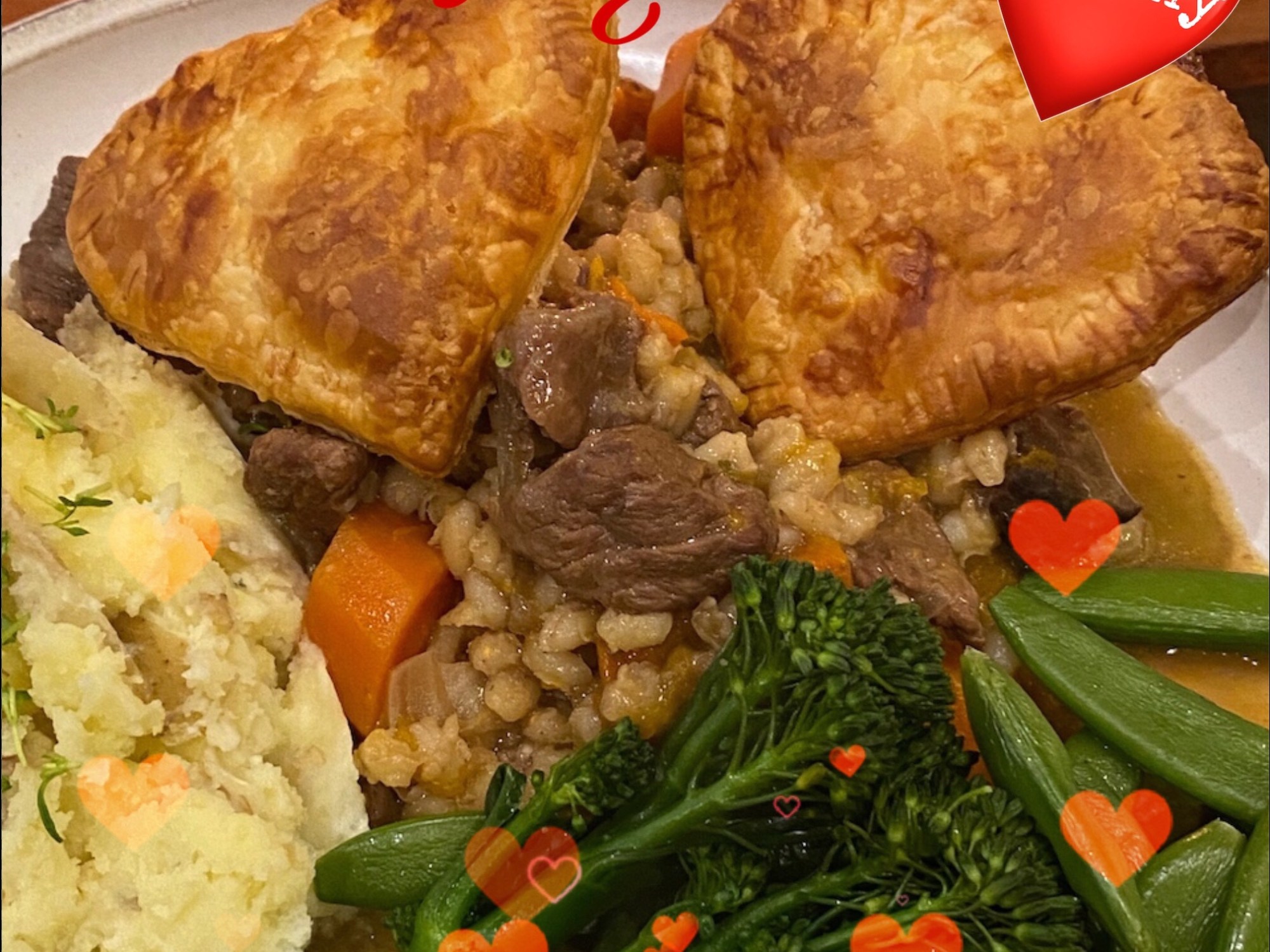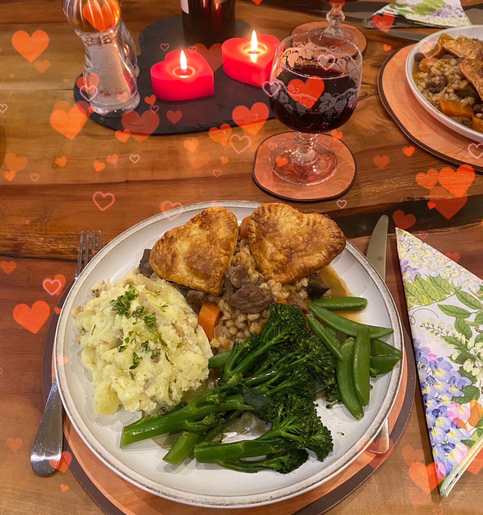 A comforting beef pie makes a lovely date night dish. This casserole makes enough for 4 so either freeze the rest for another date night or change the pastry shape and make it for a family celebration.