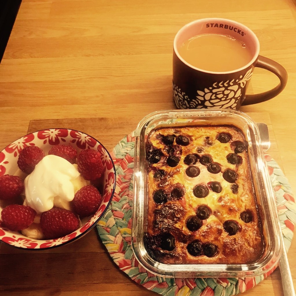 Baked oats are a perfect warm and filling breakfast. This version uses blueberries, but these could easily be swapped for raspberries.