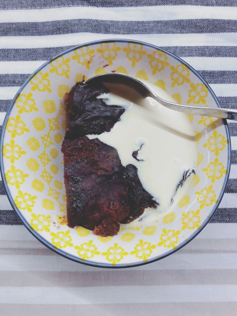 This is one of those delightful puddings that hides a molten secret. A feather light sponge light sponge concealing a delicious, hot mocha sauce inside.