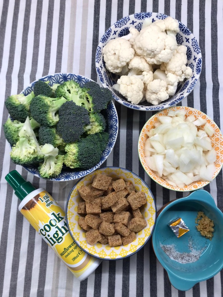 Add the stock and bring to the boil, put on the lid and cook for 5 minutes or until the cauliflower and broccoli are tender.