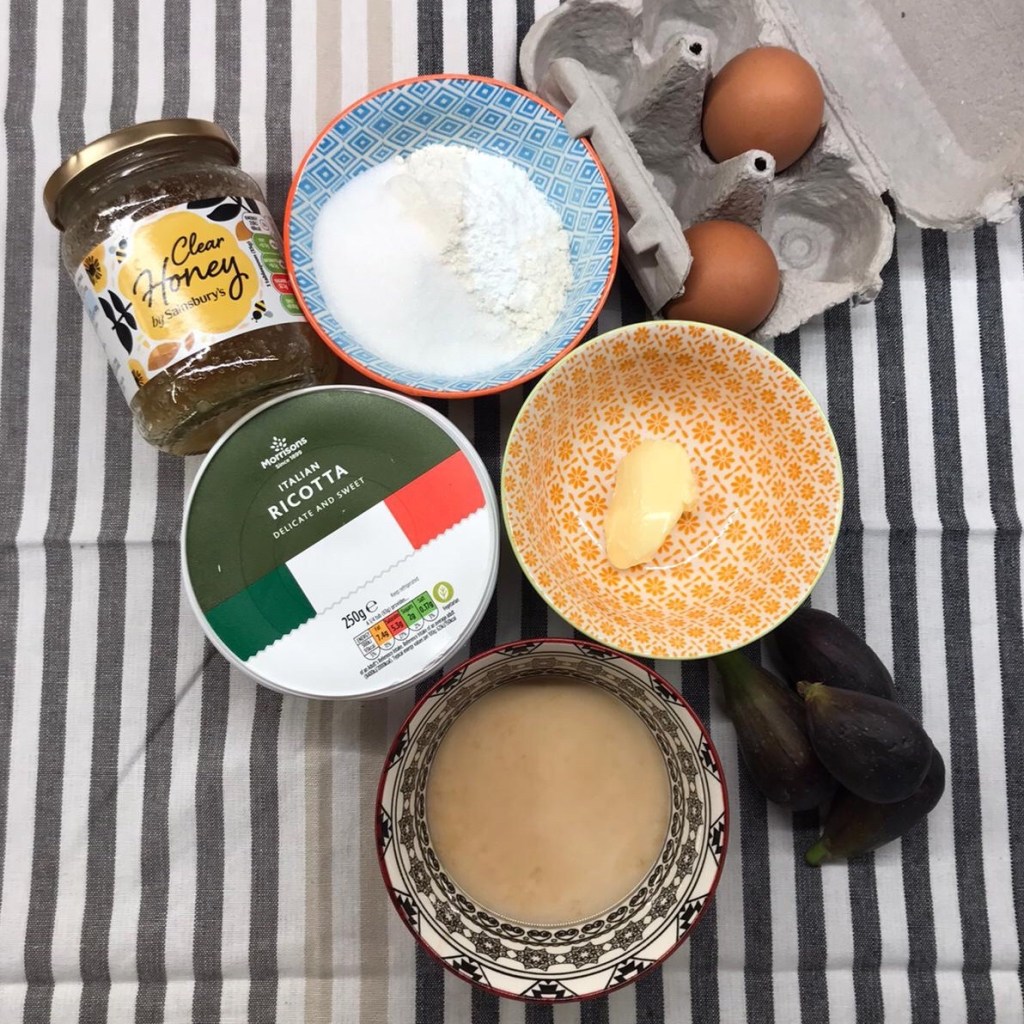 Whizz the ricotta, milk, flour baking powder, egg yolks, sugar and a few drops of vanilla to a smooth batter in a food processor. Or you could use a bowl and whisk if you don’t have a processor.