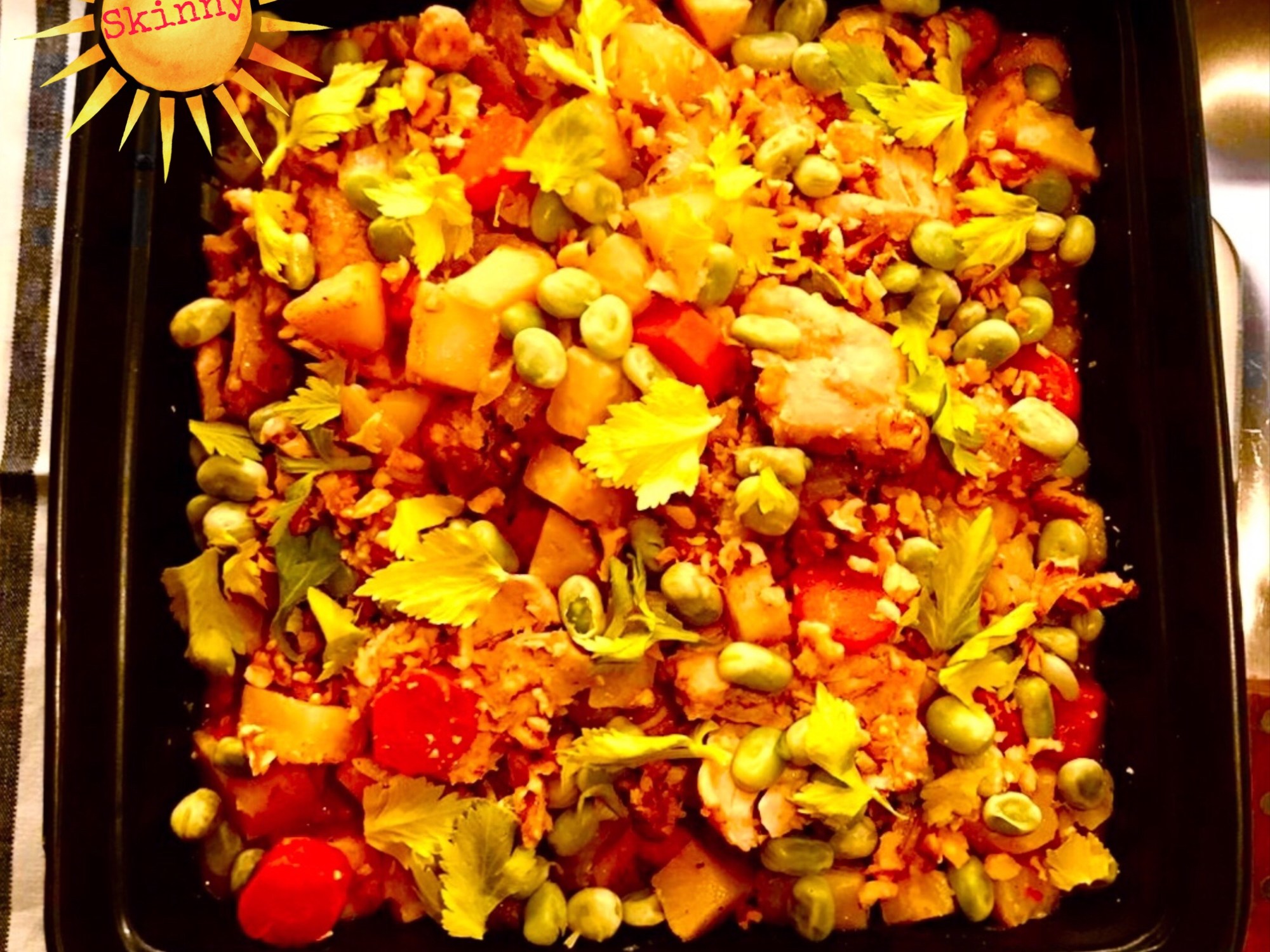 Remove the casserole from the oven stir in the broad beans to warm through.