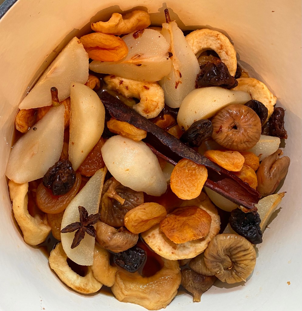 750g mixed dried fruit (apples, figs, apricots, prunes, peaches)