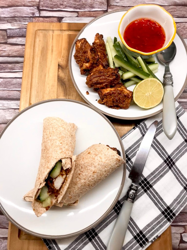 Eat warm or cold with the cucumber and sweet chilli dipping sauce or wrap everything up in a wholemeal wrap and take with you to work or the gym.