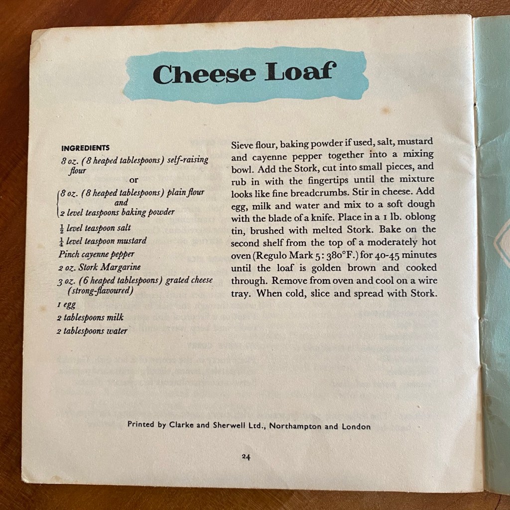 We’ve had great fun looking through these and may just share some more of the recipes with you but for now here’s The Stork Cheese Loaf!