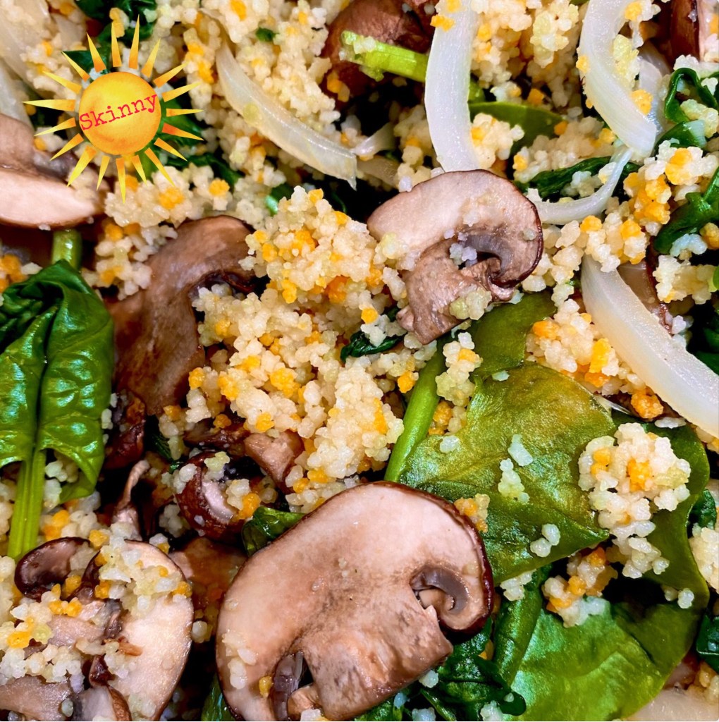 A great new version of a classic! This amazingly tasty version of couscous has been enhanced with tomato and spinach. We’ve teamed it up with onions, garlic, chestnut mushrooms and more spinach for an extra Vitamin A & iron boost.