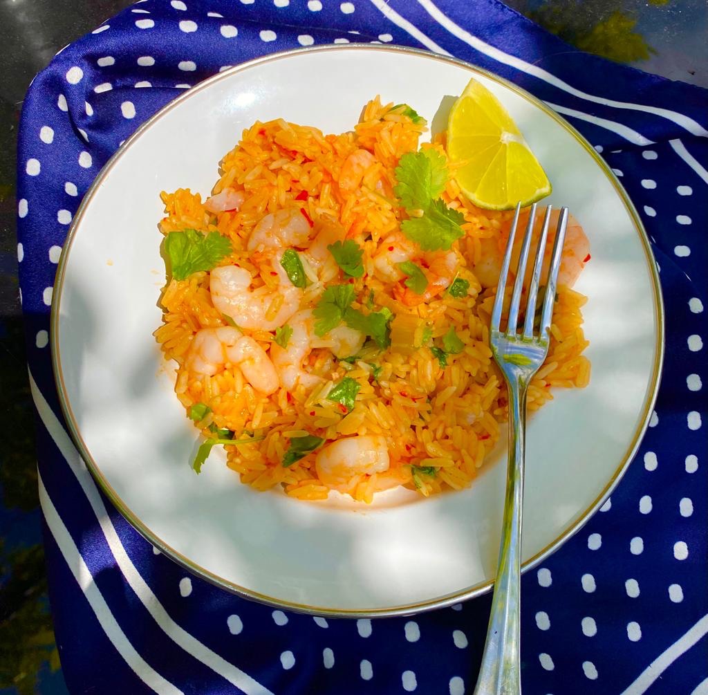 This delicious rice dish is ready in 20 minutes, all you need is a glass of chilled white while you’re cooking it!