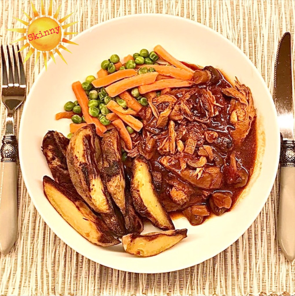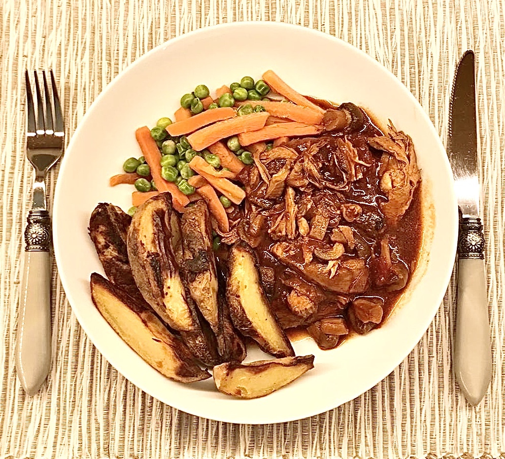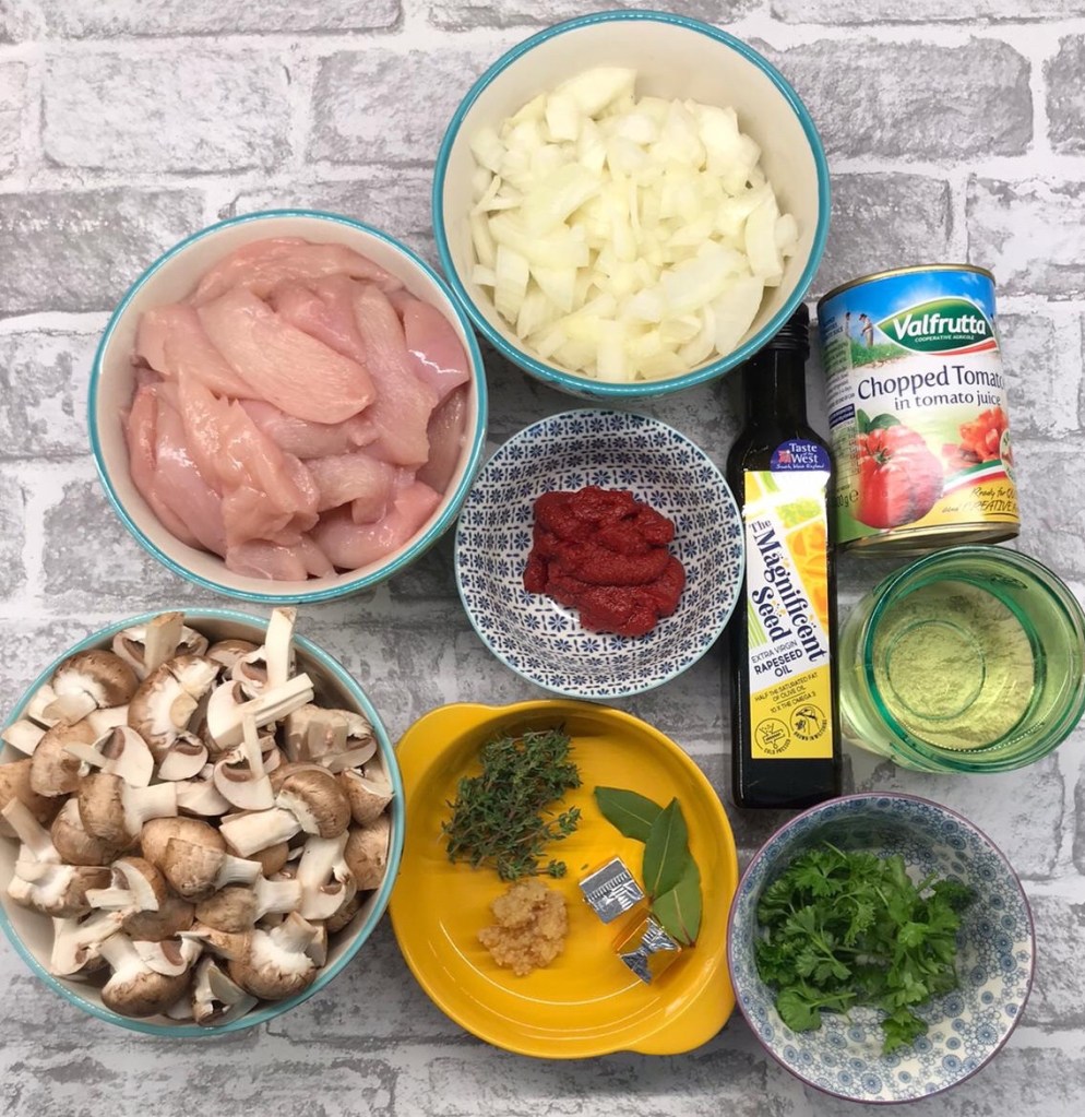 Succulent chicken, delicious chestnut mushrooms and onions all slow cooked in a rich tomato and white wine sauce, good enough for a romantic dinner date or a dinner party with friends.
