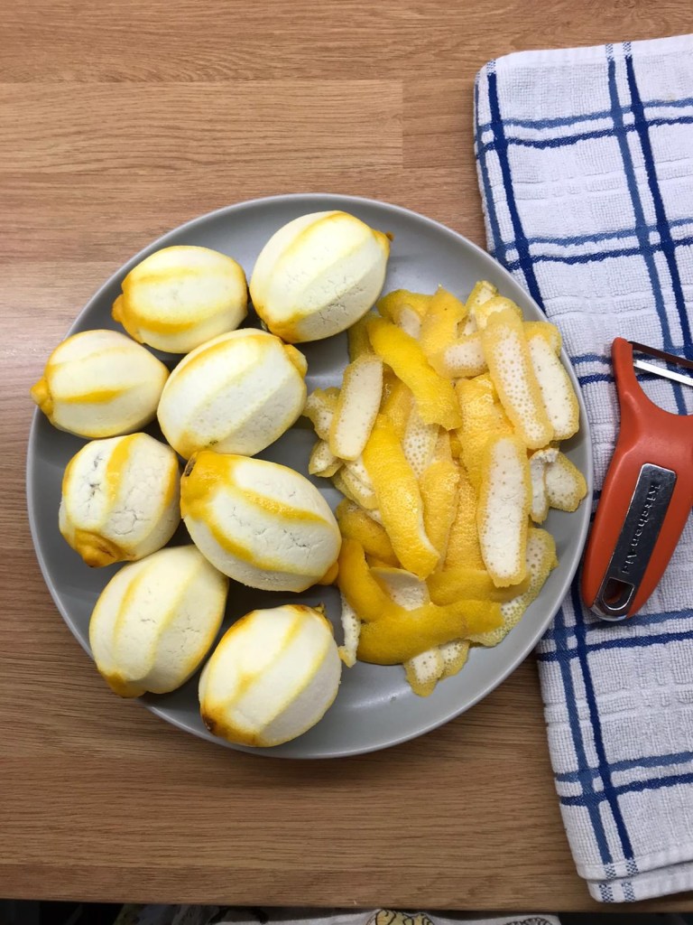 Wash and dry the lemons, then, using vegetable peeler, peel the zest into strips, be careful not to get any of the white pith as this can be bitter.