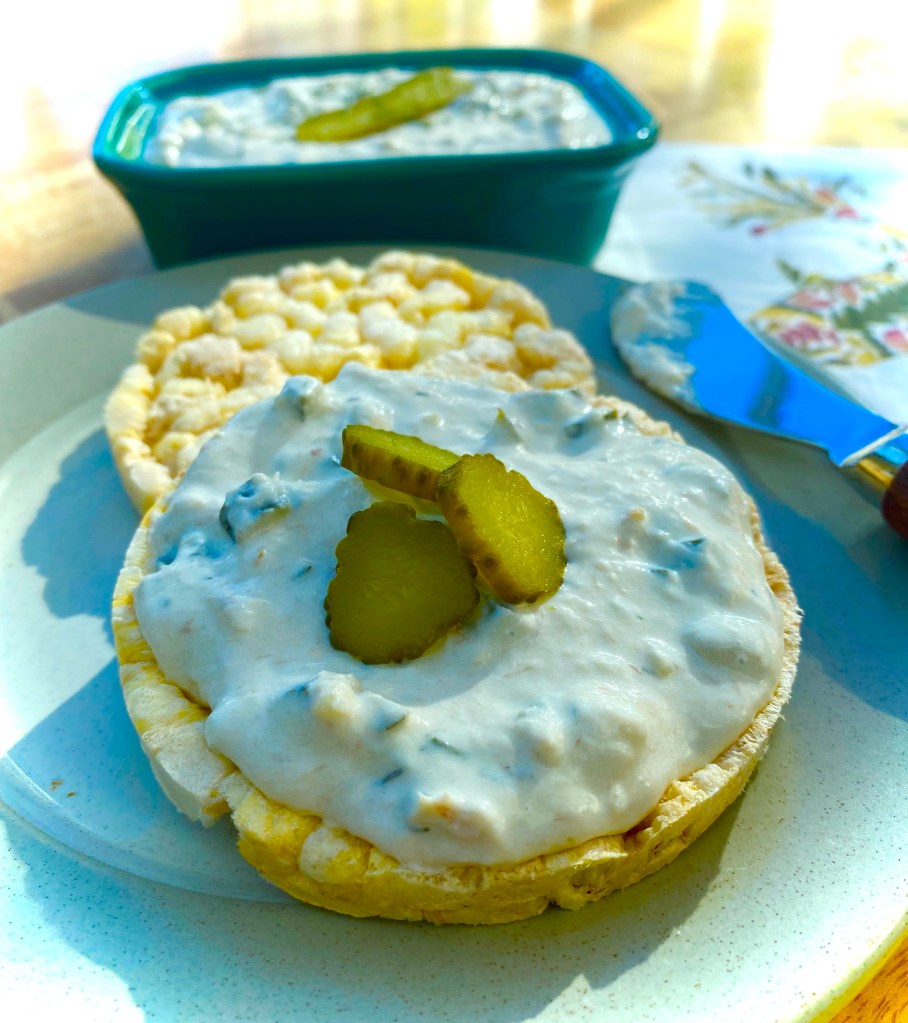 Add the dill and stir through. Serve with corn cakes, rice cakes, crackers or toast.