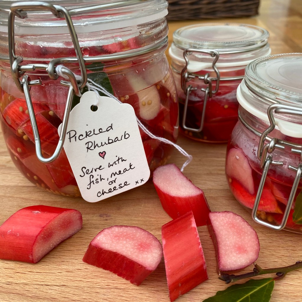 This vibrant jar of bright pink pickled rhubarb makes a fabulous culinary gift for foodie friends. Serve with smoked fish or as an elegant, interesting addition to a charcuterie or cheese board.