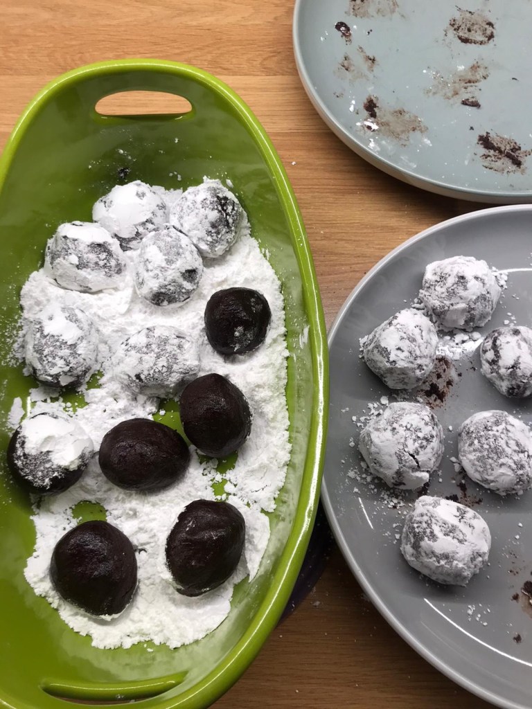 Form a tablespoon of the dough into a ball, then roll in the icing sugar to coat.