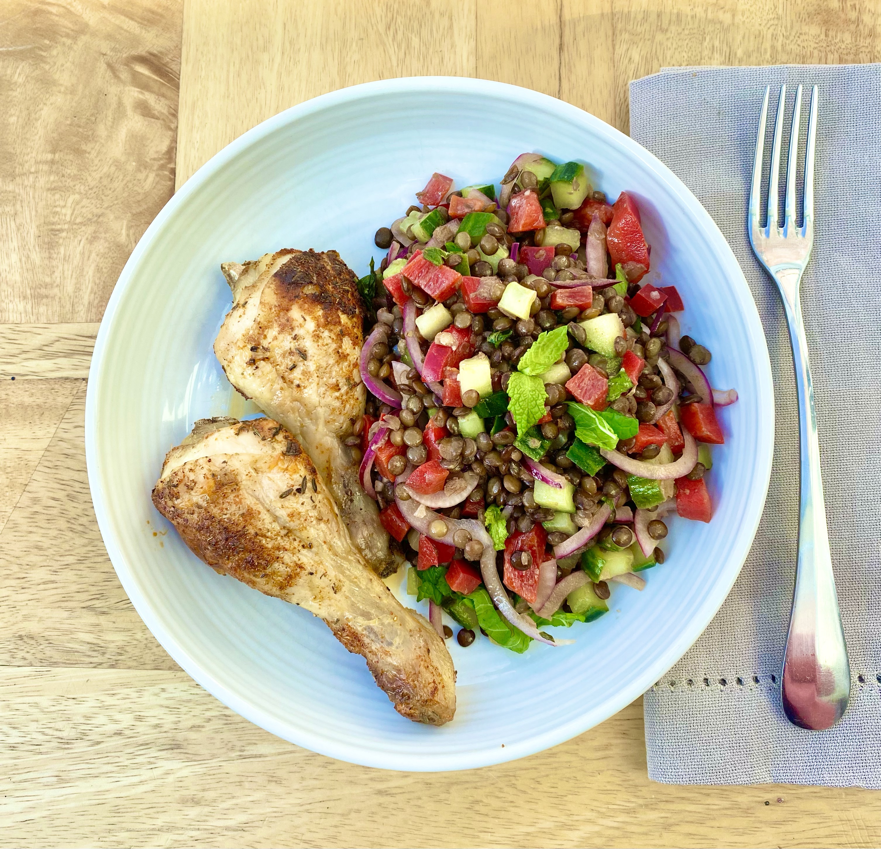 Chicken Drumsticks with Speckled Lentil Salad
