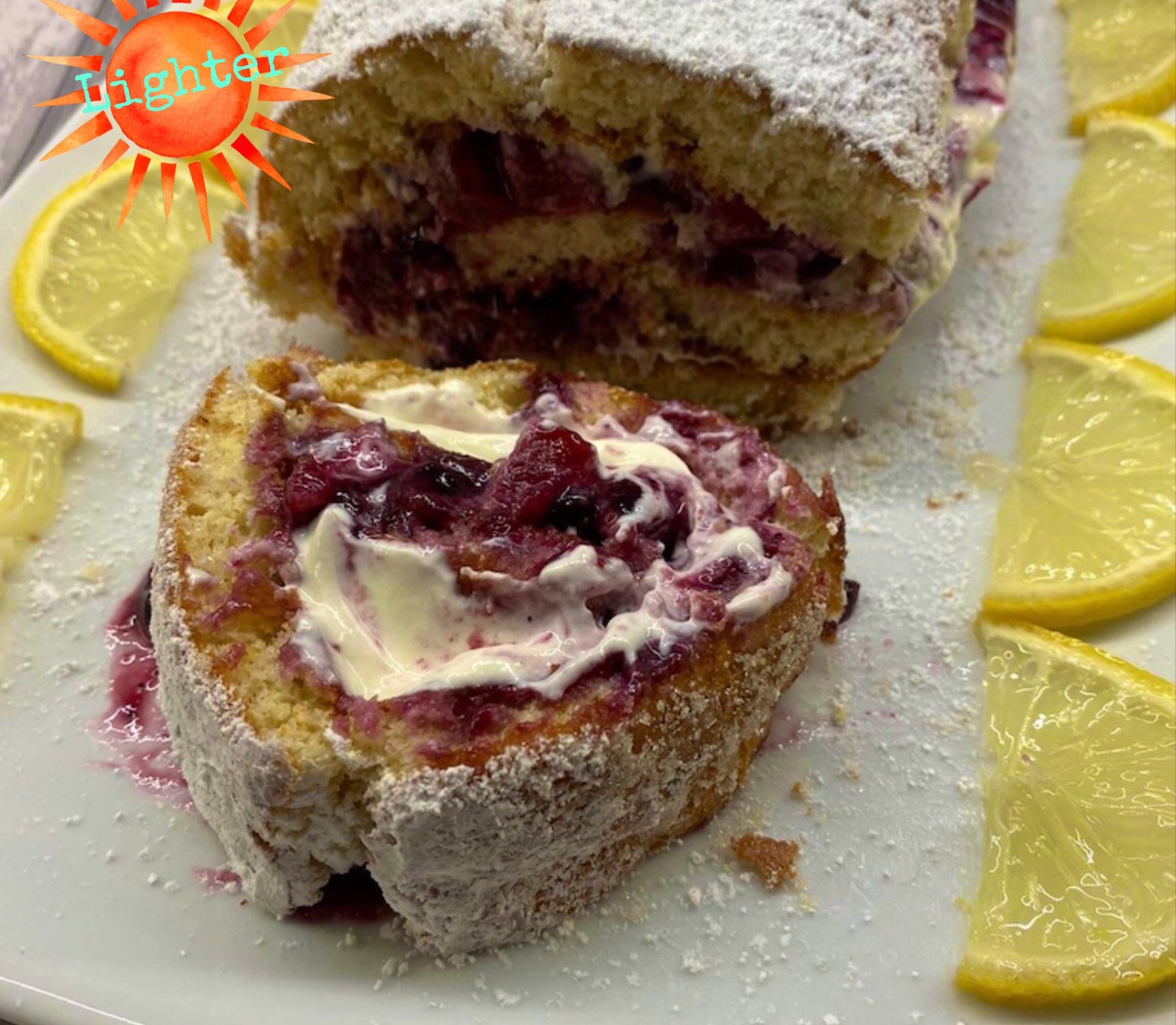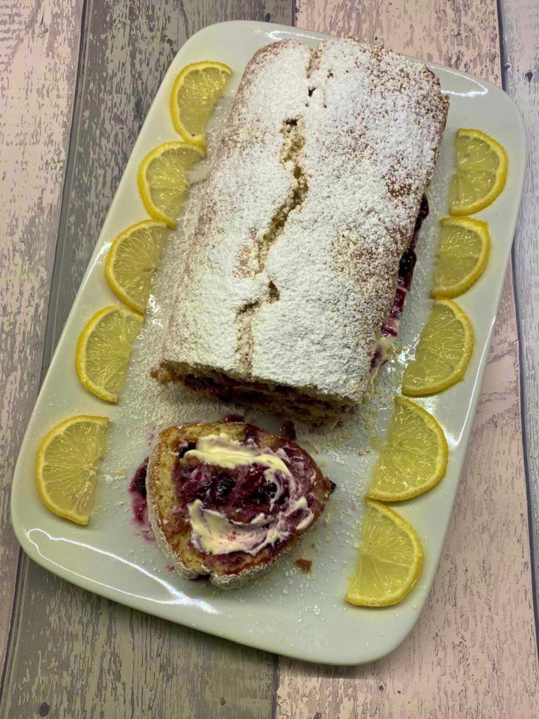 This light sponge is rolled with a fabulous filling of fresh fruit, jam, and creamy crème fraiche and it’s perfect with a mid-morning cuppa or as an impressive dessert to serve to guests. Don’t worry if your sponge cracks a little the flavour will be just as fantastic.