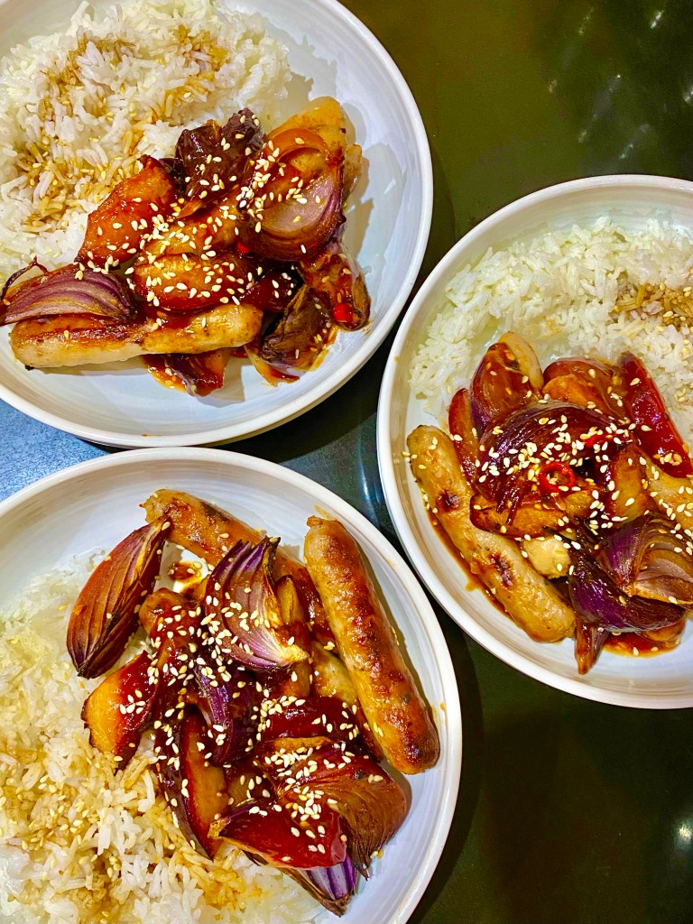 2 thoughts on “Sticky Sweet & Sour Sausage Traybake”