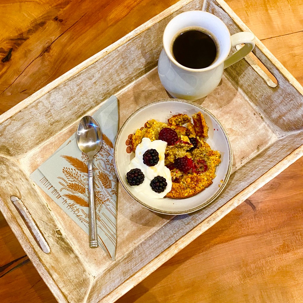Cold mornings deserve a warming breakfast like this. It’s quick to put together and can be cooking while you get ready for the day.