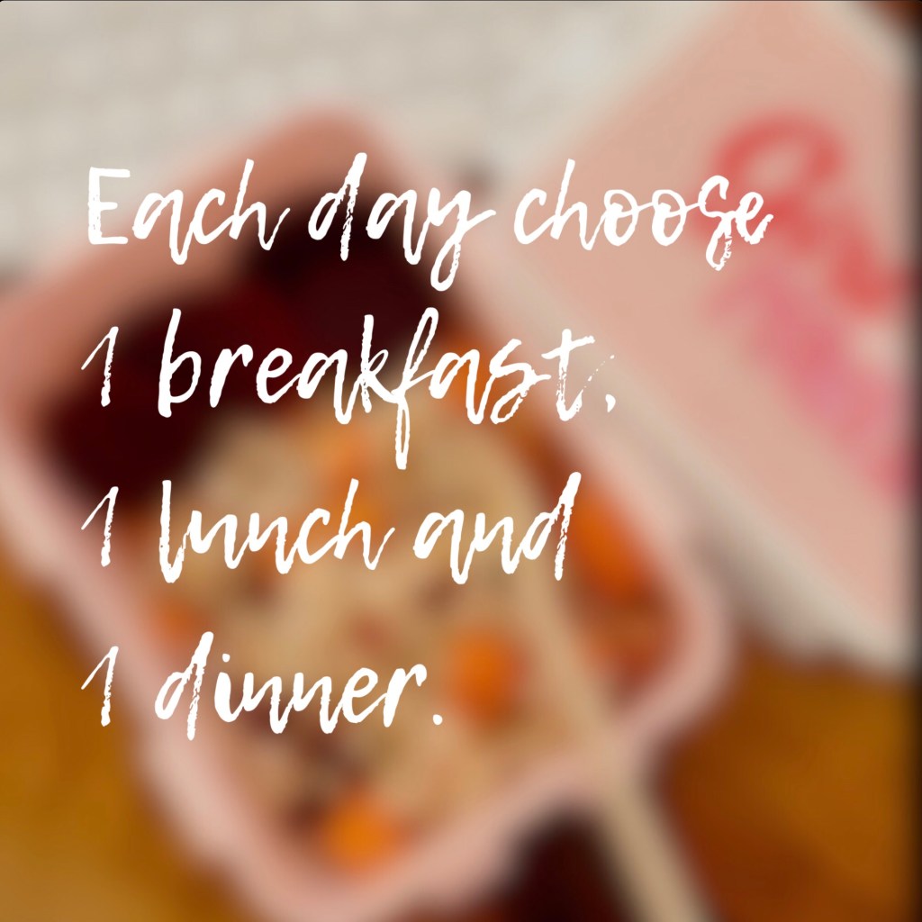 This time we’ve left the daily choice up to YOU. YOU pick which breakfast to have, which lunch to eat and which dinner to cook, and make the plan work for YOU!