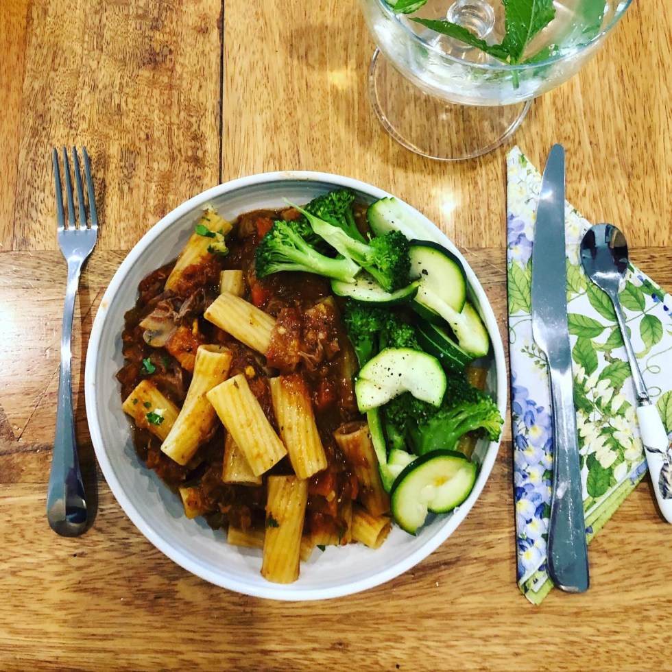 Beef Ragu with Lemony Garlic Topping
